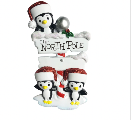 North Pole Penguin Family Christmas Ornament