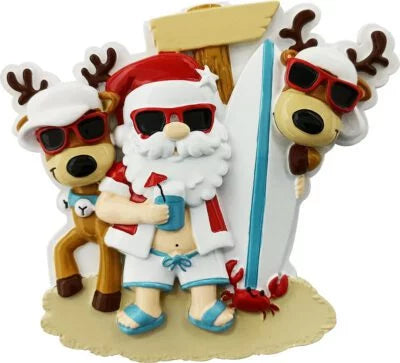 Santa Beach Hangout Family Christmas Ornament